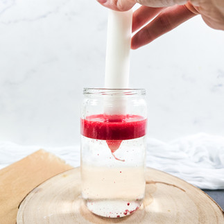 Anschließend tauchst du deine Kerze so oft und so tief in das Wachs ein wie der Farbbereich sein soll.