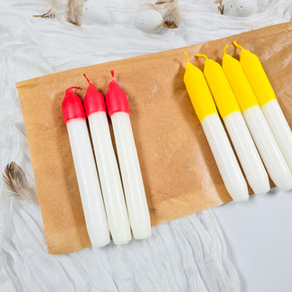 Leuchtendes Gelb fürs Küken oder ein kräftiges Rot für den Hahnenkamm – durch das Eintauchen entstehen wunderschöne, knallige Farbverläufe, die jede Kerze einzigartig machen. Und das Beste daran? Mit einem kleinen DIY-Hack benötigst du nur eine kleine Menge Wachs um deinen weißen Kerzen einen neuen Look zu verpassen.