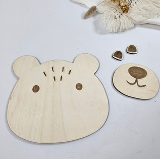 Leg ein A3 Holzbrett mit ca. 4mm dicke in deinen Laser ein und verwende mein Bärmotiv fürs lasern. Schleife anschließend alle Teile gründlich ab (Bild 2).