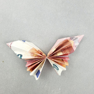 2 Geldscheine pro Schmetterling (oder ein Geldschein und buntes Papier)