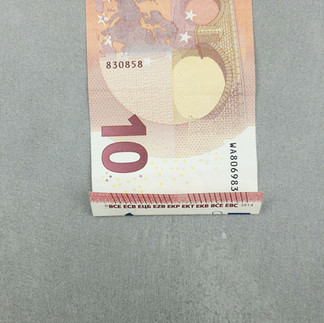 Für den unteren teil nimmst du den zweiten Geldschein und faltest diesen als ZickZack-Falz an der kurzen Seite des Geldscheines und am Ende auch mittig falten.