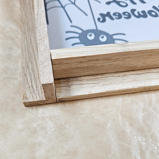 Trage an der Rückseite deines Rahmens entlang der inneren Kanten etwas Holzleim auf (sparsam sein) und leg dein Motiv mit der bedruckten Seite nach unten auf den Rahmen (Bild 1).