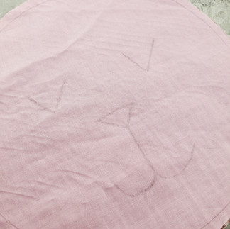 8. Leg nun den Hasen mit dem Gesicht nach unten auf den zweiten Kreis (auch hier die hübsche Seite nach innen) und leg die Ohren mit der Öffnung nach oben und über den Kreis leicht hinausragend hinein. Achte vor dem Feststecken darauf das die Ohren nicht versehentlich unten im Kreis mit eingenäht werden können.